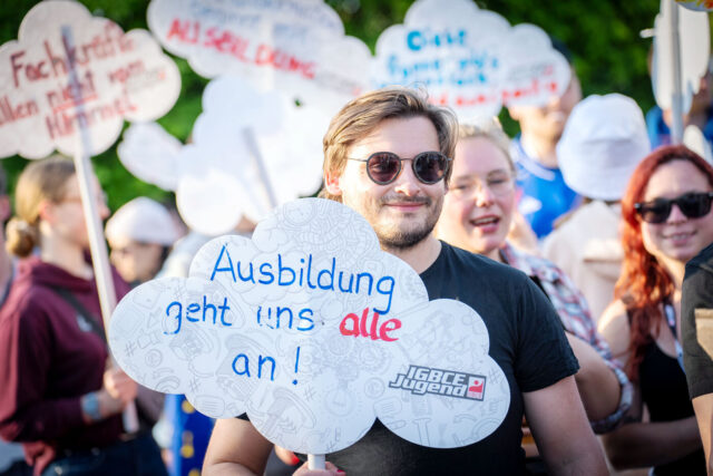 Fachkräfte fallen nicht vom Himmel – ohne Ausbildung keine Zukunft“: Mit diesem eindringlichen Appell hat die IGBCE im Jahr 2023 eine öffentlichkeitswirksame Kampagne zur Stärkung der Ausbildung gestartet. Ziele sind aktive Maßnahmen der Unternehmen gegen den Fachkräftemangel und verbindliche Betriebsvereinbarungen unter anderem zur Anzahl der Ausbildungsplätze.