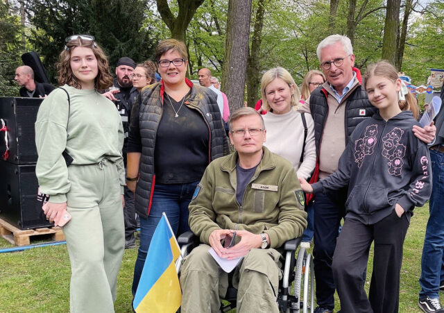 Die Solidarität richtet sich auch an die, die weiter in der Ukraine aktiv sind. Das prominenteste Beispiel ist Pavlo Prudnikov. Der Vizepräsident der Gewerkschaft Atomprofspilka wurde im Kriegseinsatz durch einen Granatsplitter schwer am Rücken verletzt. Er kam mit seiner Familie 2023 nach Deutschland und konnte nach Vermittlung durch die IGBCE hier medizinisch behandelt werden. Prudnikov bleibt querschnittsgelähmt, konnte aber mit seiner Familie zurückkehren in die Ukraine und arbeitet in Kiew wieder als Vizepräsident seiner Gewerkschaft.